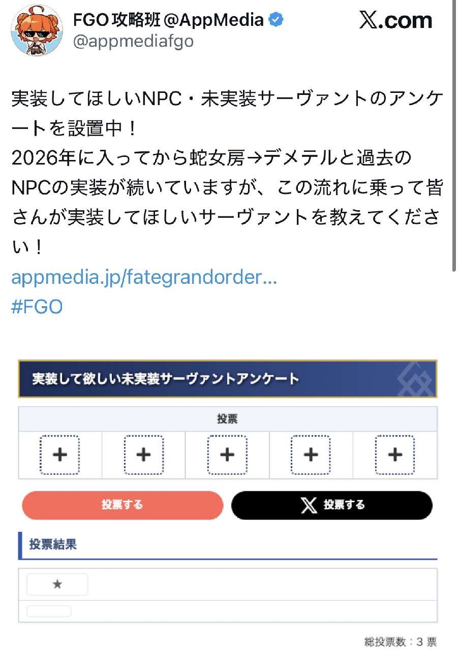 - アプメで実装してほしいNPC投票始まったけど、どうする?